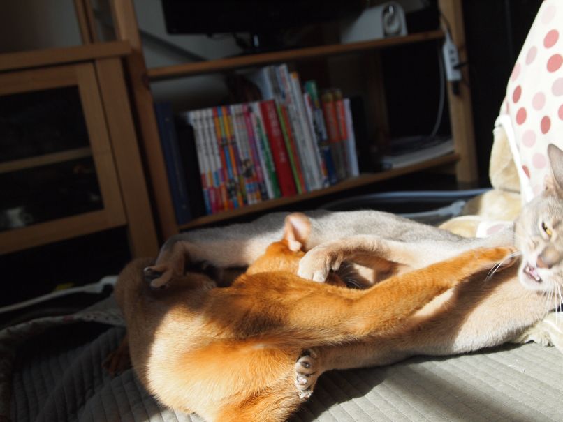 さらにネコがくっついてくると嬉しいんだけど、暑い・・・・・・